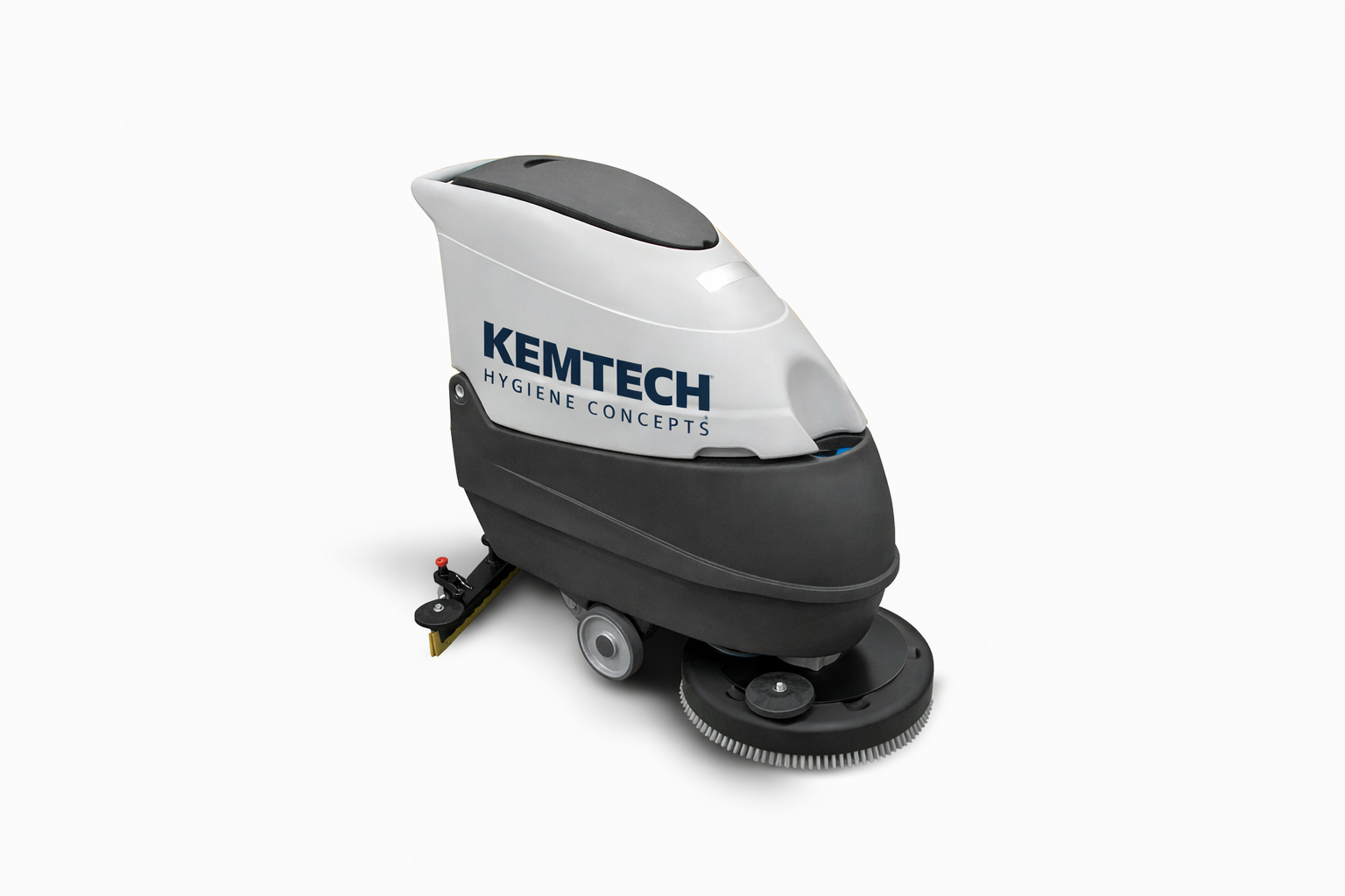 Constructed with roto-molded polyethylene tanks that are shock- and acid-resistant, the lower tank also serves as the battery compartment. Low-noise operation is achieved through the protected positioning of the vacuum motor. A powerful gear motor drives a metal brush plate equipped with an integrated plastic splash guard and bumper for durability.